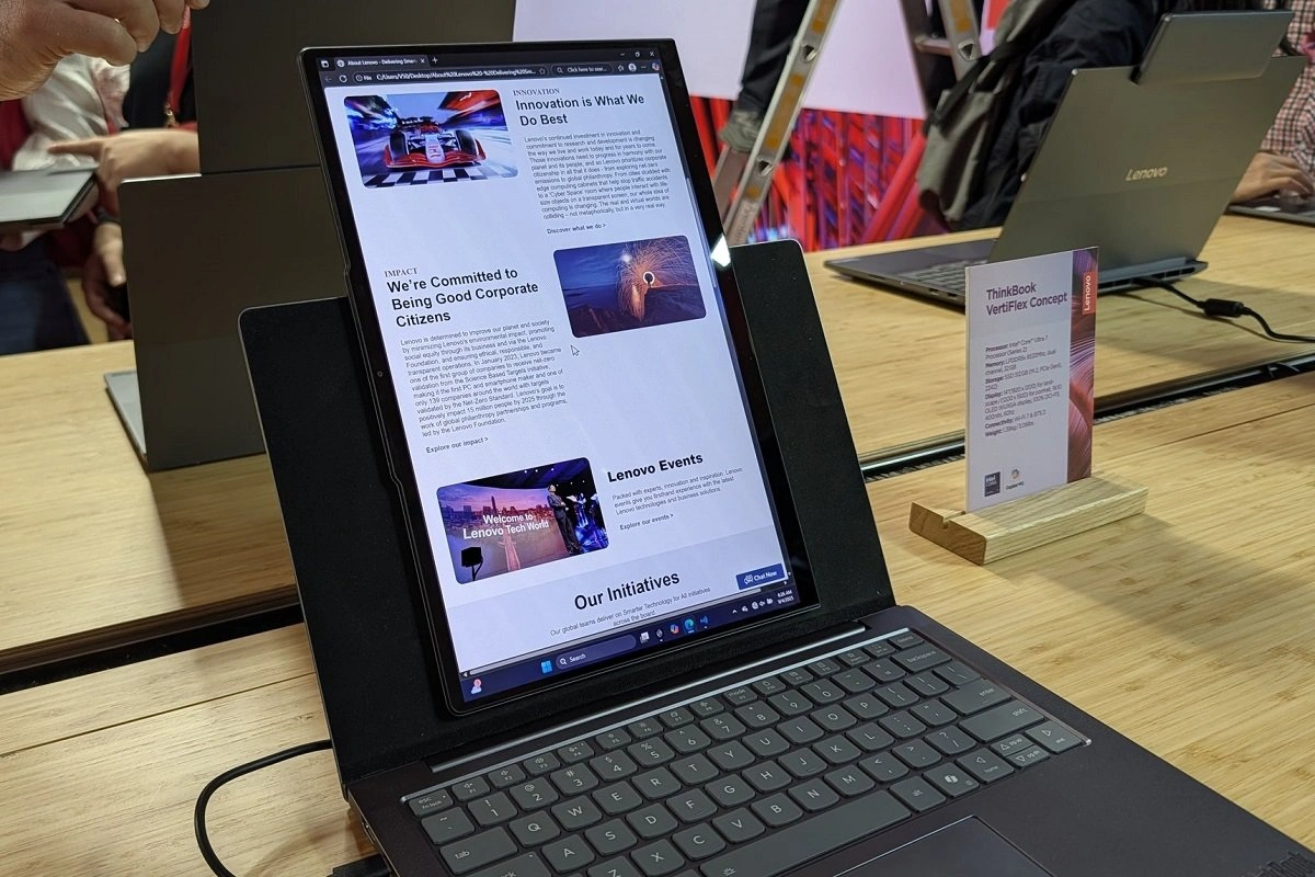 Tokom demonstracije, Lenovo je prisutne provelo kroz transformacije. Sekundarni zaslon može se podići i magnetski pričvrstiti na različite načine. S USB-C priključkom na Magic Bay sučelje, postaje potpuno funkcionalan putni monitor. Možete ga koristiti u vodoravnom ili vrtikalnom načinu rada, a automatska rotacija rješava promjene orijentacije. Demo jedinici je trebalo malo nagovaranja da se pravilno rotira, ali to je stvarnost ranih koncepata.