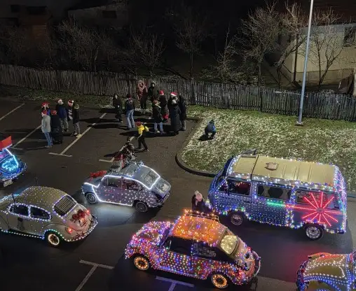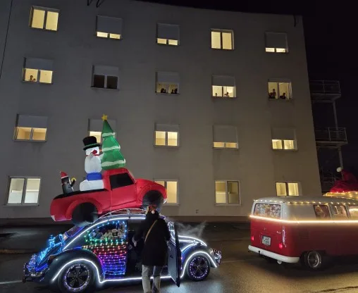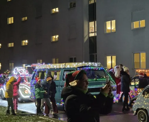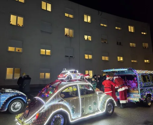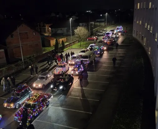 Ukrašena oldtajmer vozila u svečanom defileu obišla su bolnički krug, ispraćeni radoznalim pogledima mališana s prozora pedijatrijskog odjeljenja.