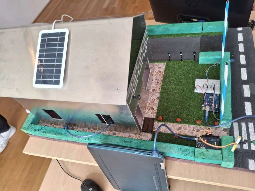 Studenti Dragan Nikić, Strahinja Dragičević, Lejla Gradaščević i Jovana Nikić napravili su maketu kuće sa pametnim semaforom, pametnom rasvjetom, protivpožarnim aparatom i solarnim napajanjem.