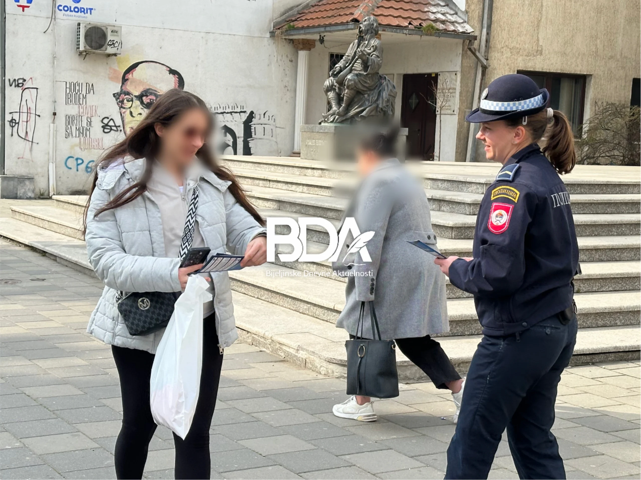 Policijski službenici Policijske uprave Bijeljina u saradnji sa Mrežom žena Ministarstva unutrašnjih poslova Republike Srpske – MUP RS WPON danas su na Trgu Kralja Petra I Karađorđevića u Bijeljini organizovali podjelu letaka u okviru projekta Mreže žena „Unapređenje odgovora na digitalno nasilje nad ženama i djevojčicama u BiH”.