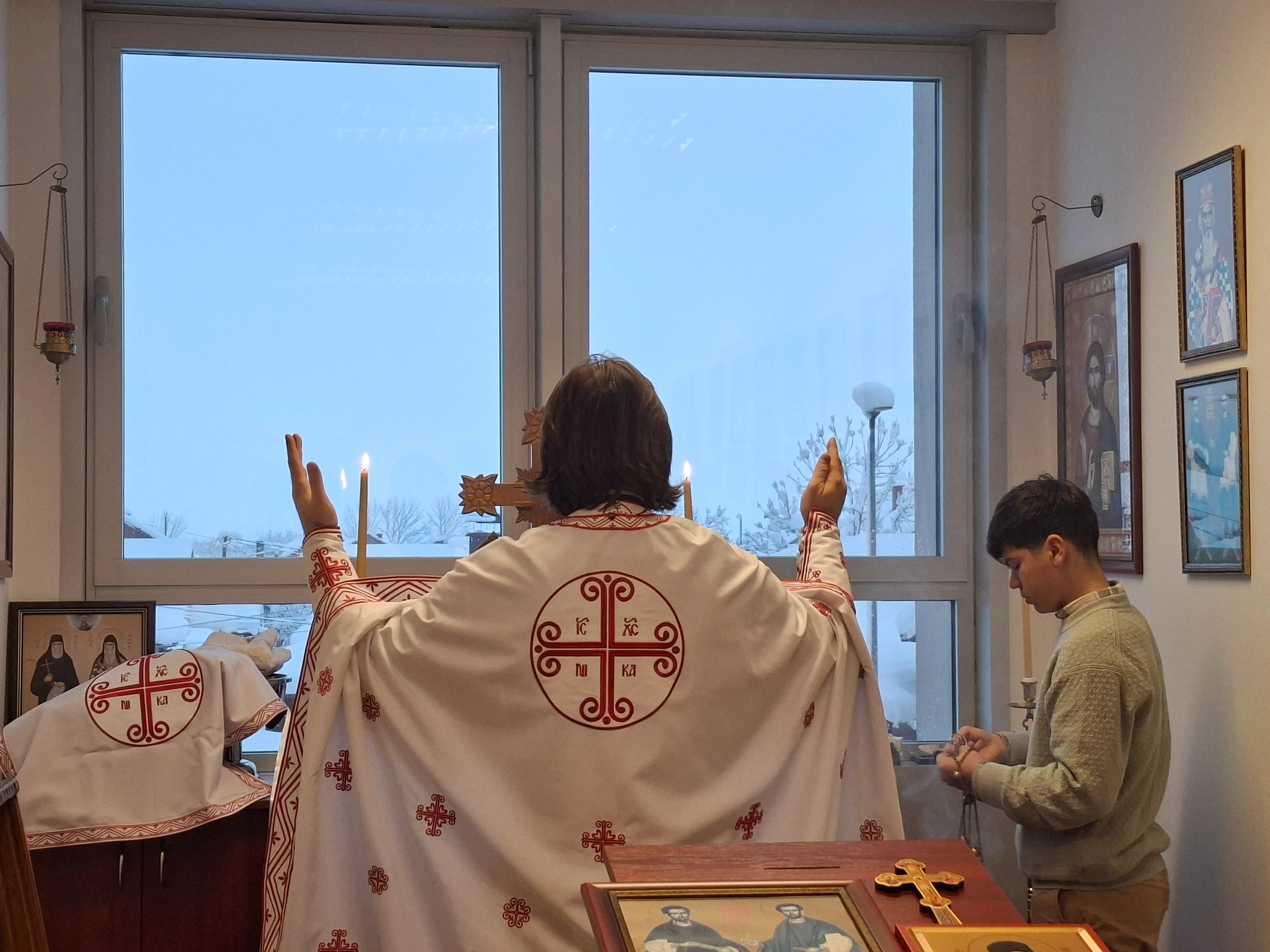 Protojerej Gavrilović obratio se prisutnima prigodnom besjedom, čestitajući predstojeći praznik Rođenja Hrista – Božić, izražavajući želje da se bolesni što prije oporave i Božić dočekaju u svojim domovima sa najmilijima.